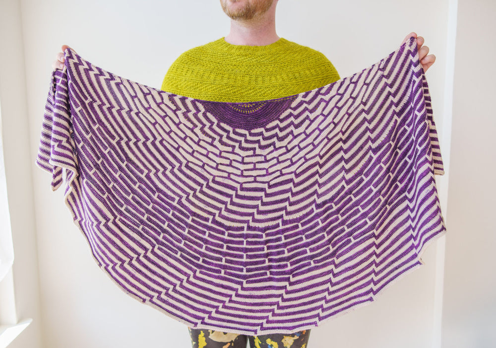 Get ready to cast on my newest creation: The Contrast Blast Shawl! Choose two gorgeous colors to create this graphic beauty. The contrast blast pattern is created with slip stitches so you only work with one color at a time, making it a perfect Westknits project for beginner knitters. The pattern even includes video tutorials to help you cast on and bind off with confidence. Choose two high-contrast colors for a bold graphic statement, or experiment with softer, more shadowy colors for a more subtle color effect. Already knit the Contrast Blast Socks? Now you can make a matching shawl for an eye-catching coordinated look!