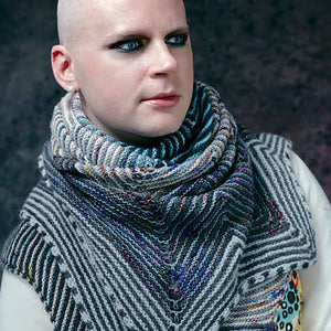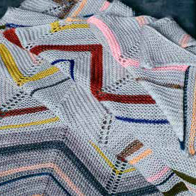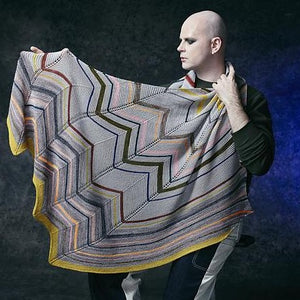 Collect a colorful array of yarns to knit this easy garter stitch chevron shawl. Start with a small cast on and watch as the fabric gradually grows into an expansive wingspan. The sideways construction drapes beautifully and provides a large canvas for you to play with stripes and color pops. Four skeins of yarn will yield the large shape, but use as many colors as you like to create a vibrantly striped landscape.