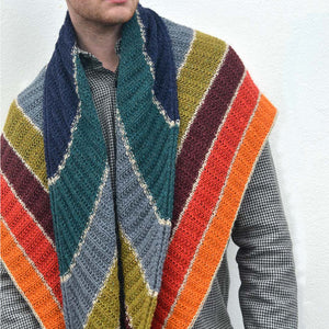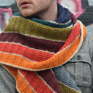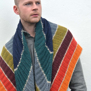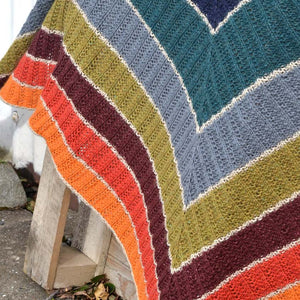 Pick a palette of beautiful colors and enjoy knitting this top-down ribbed shawl. Each colorful section is outlined with a contrasting color for a simple clean look. An I-cord bind off finishes the large shawl. Feel free to experiment and use the triangular fabric as a frame for adventurous color play!