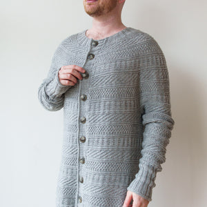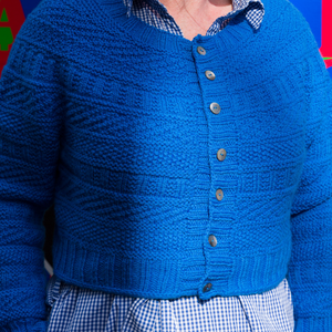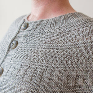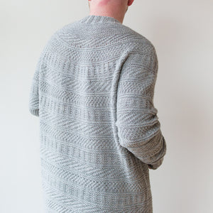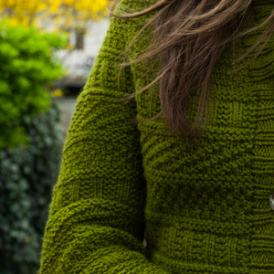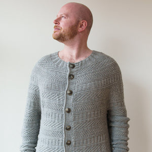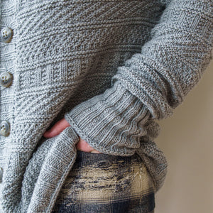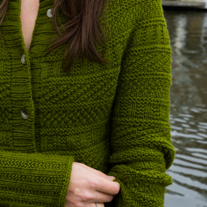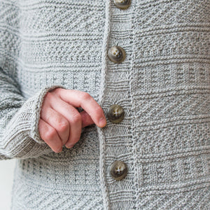 Enjoy beautiful textured stitches with this top-down cardigan! The yoke and body of this cardigan are knit flat with sleeves knitted in the round. Diagonal ribbing, moss stitch, and broken ribbing decorate the fabric along with easy garter stitch rows. The beginner friendly textures provide an interesting and relaxing knitting journey, perfect for travel knitting or knitting with your favorite tv shows. Ribbed edges on the collar, cuff, and bottom of the sweater beautifully frame the textures. A final ribbed button band is knitted by picking up stitches along the front edges of the cardigan. Choose some fun buttons to complete your project and enjoy layering this elegant garment with your hand knitted wardrobe. This pattern includes video tutorials throughout the instructions to help you cast on, bind off, work short rows, and one-row buttonholes!
