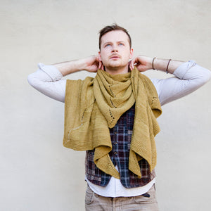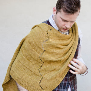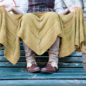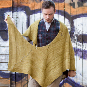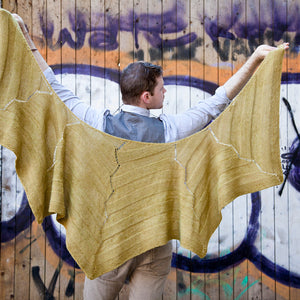 79” / 201cm wingspan from tip to tip, 28” / 71cm along center point from CO to BO edges. Measurements taken after blocking.Yarn