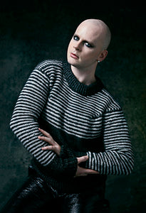 This graphic top-down seamless pullover requires two colors of worsted weight wool. The clever construction begins with a hemmed collar in twisted ribbing, followed by two-color brioche saddle shoulders. The top of the sweater is shaped with easy garter stitch stripes. Continue striping the colors in stockinette stitch for a rounded yoke. Stripes flow down the sleeves, which are finished with long ribbed cuffs. This cozy sweater will become a favorite addition to your winter wardrobe.