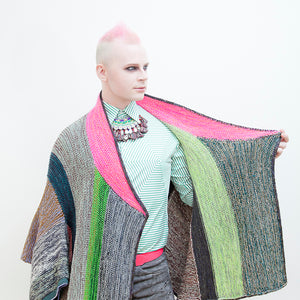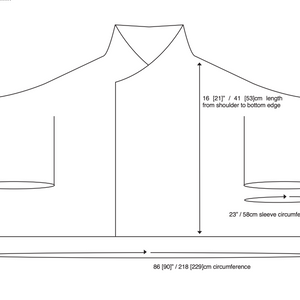 The final shape is generously oversized with two openings for each arm so you can flip the jacket upside down for a longer dramatic look.All rights reserved. Pattern for personal use only.