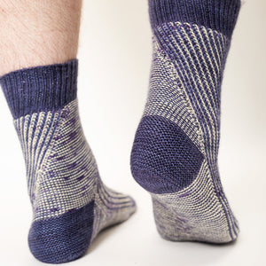 Choose two colors of fingering weight sock yarn to knit these top-down brioche socks. 1x1 ribbing in the cuff flows into squishy brioche and garter stitch for the leg. An increase and decrease on either side of the brioche section forms a skewed diagonal accent that continues into the top of the foot. The bottom of the foot is knit in smooth stockinette stitch for a comfortable sole. Select your size from the five foot circumference sizes and customize the leg and foot length to knit your own cozy Askews Me Socks.