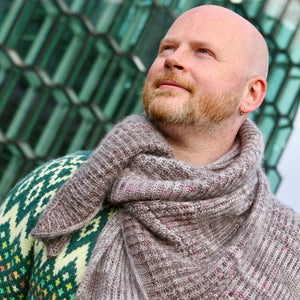 Fingering [DK] weight held together with lace weightChoose Fingering weight as your base yarn for a lighter weight version or choose DK weight as your main base yarn for a thicker winter weight. You can knit this shawl without mohair if you want a wool only version. The mohair marl adds a beautiful soft halo to the fabric.