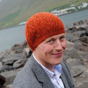 Hat is designed to fit an average 21″ / 53cm to 24″ / 61cm circumference head. Hat is shown on a 22.5″ / 57cm head. Different sizes can easily be achieved by altering needle size and/or yarn weight.