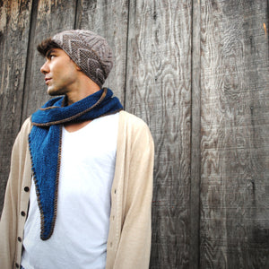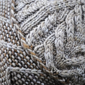 Latvian braids border garter stitch with traveling slipped stitches pointing westward in this adventurous design. Cast off at the end of the brim for a headband or continue by working plump cables for a warm hat. Both options are full of texture and would be well suited as gifts or a special project for yourself!